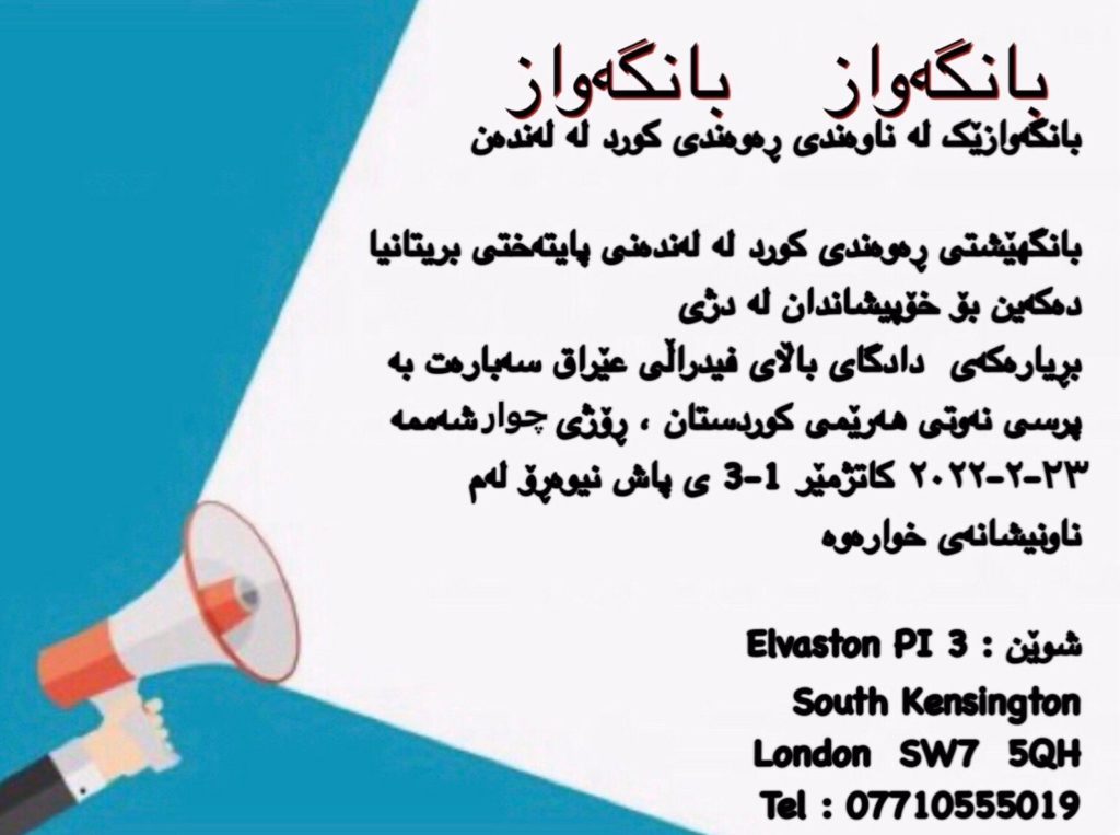 Em bang li Kurdên London a paytexta Brîtanyayê ku beşdarî xwepêşandana li dijî biryara Dadgeha Bilinda Federal a Iraqê ya li ser pirsgirêka petrola Herêma Kurdistanê bibin. Xwepêşandan wê roja sêşemê di 13:00-15:00an de be.