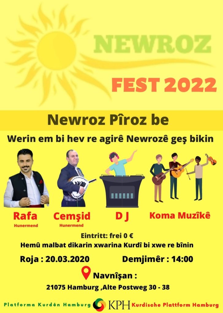 Em wek Platforma Kurdên li Hamburgê, Newrozê bi awayekî coş û mezin li hemû Kurdan pîroz dikin.