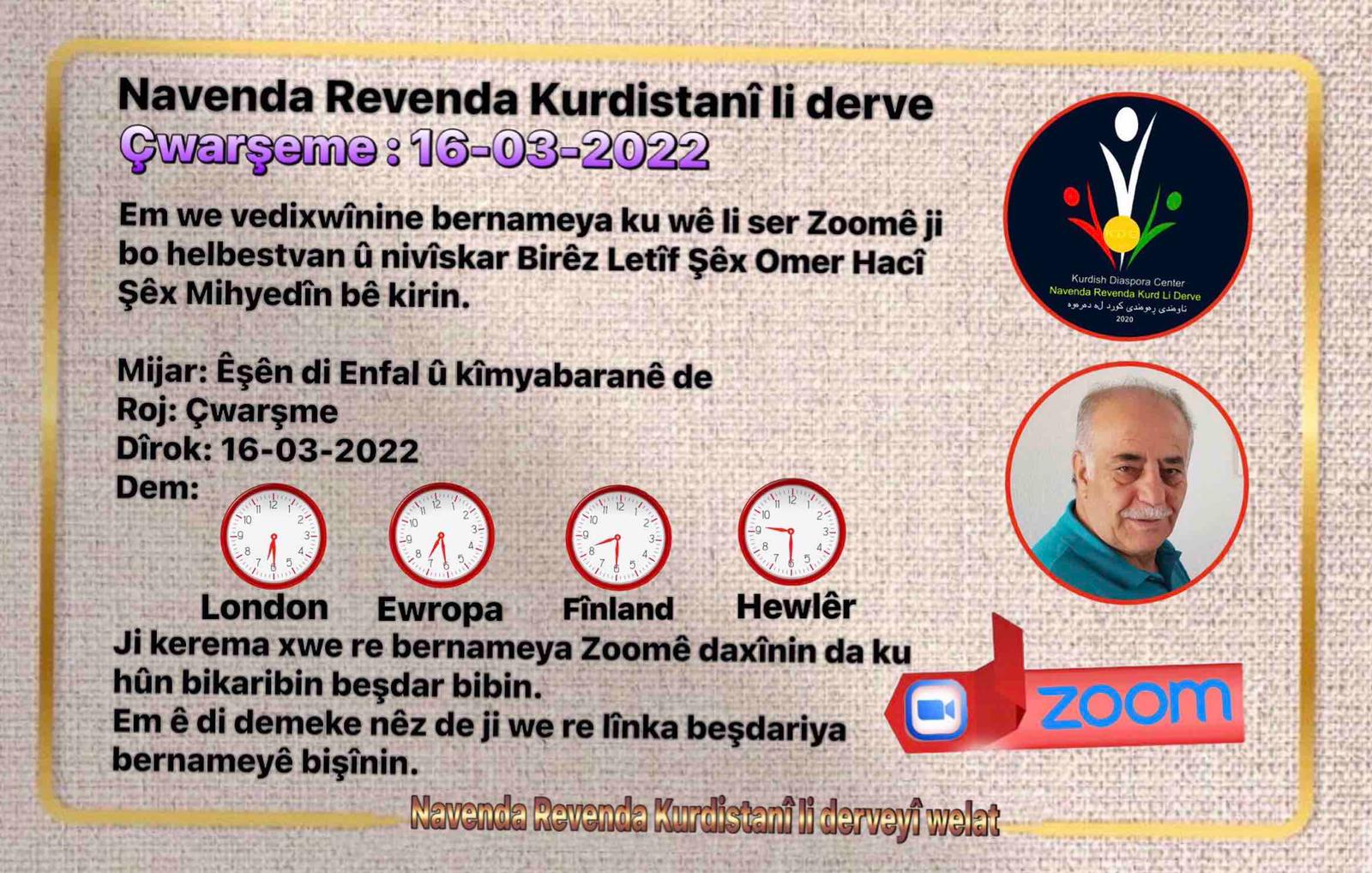 Em we vedixwînine bernameya ku wê li ser Zoomê ji bo helbestvan û nivîskar Birêz Letîf Şêx Omer Hacî Şêx Mihyedîn bê kirin.