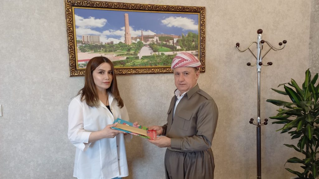 Serokê dîska rewanda Kurdistanî li baregeha Barzanî pêşwaziya her du mamostayên perwerde û fêrbûna zimanê Kurdî bo zarokên sirgûnê kir û ji bilî dayîna xelat û spasiyên ji ber westiyana wan, bo korsa duyem jî ramanên nû hatin gotûbêjkirin