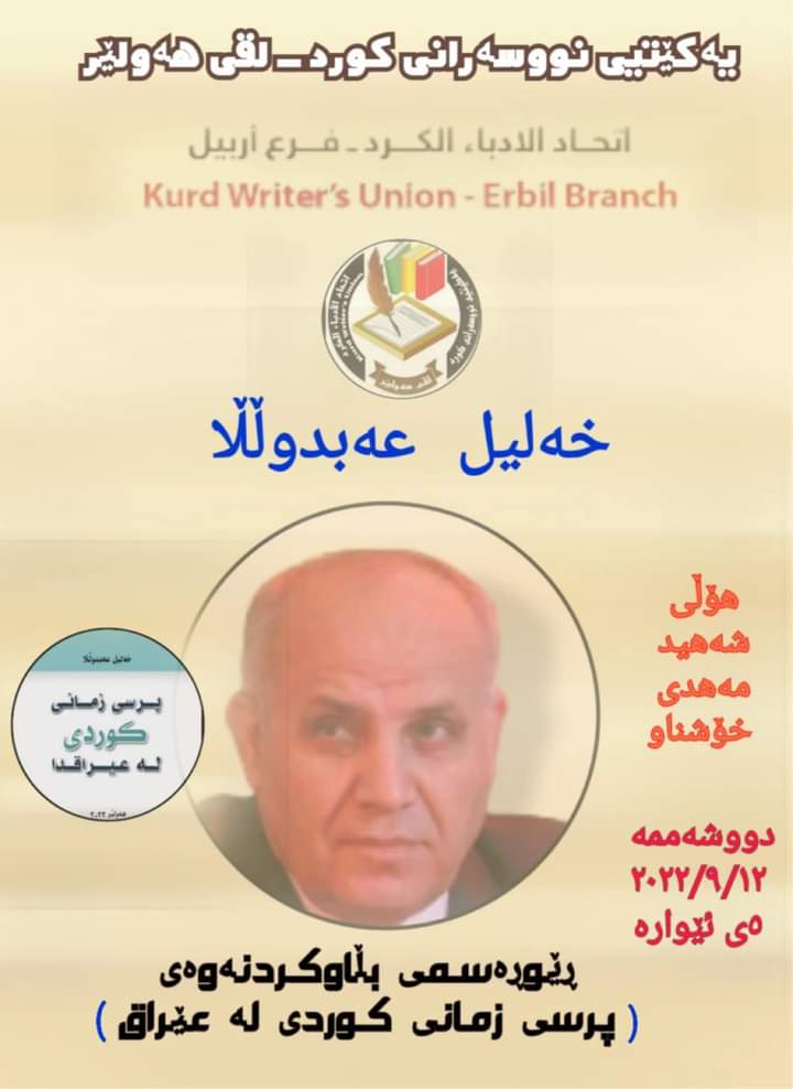 Doh roja 12 Êlûna 2022 mûzafer Ehmed endamê navenda rewanda Kurdistanî beşdarî di dêrendazeyekê de ji bo nasandina pirtûka nivîskar Xelîl Ebdullah pirsa zimanê Kurdî li Iraqê kir ku li hola Mehdî Xoşnawî ya baregeha liqa Hewlêrê ya Yekîtîya Nivîskarên Kurd li Hewlêrê ya paytextê herêma Kurdistanê hat sazdan