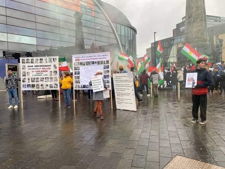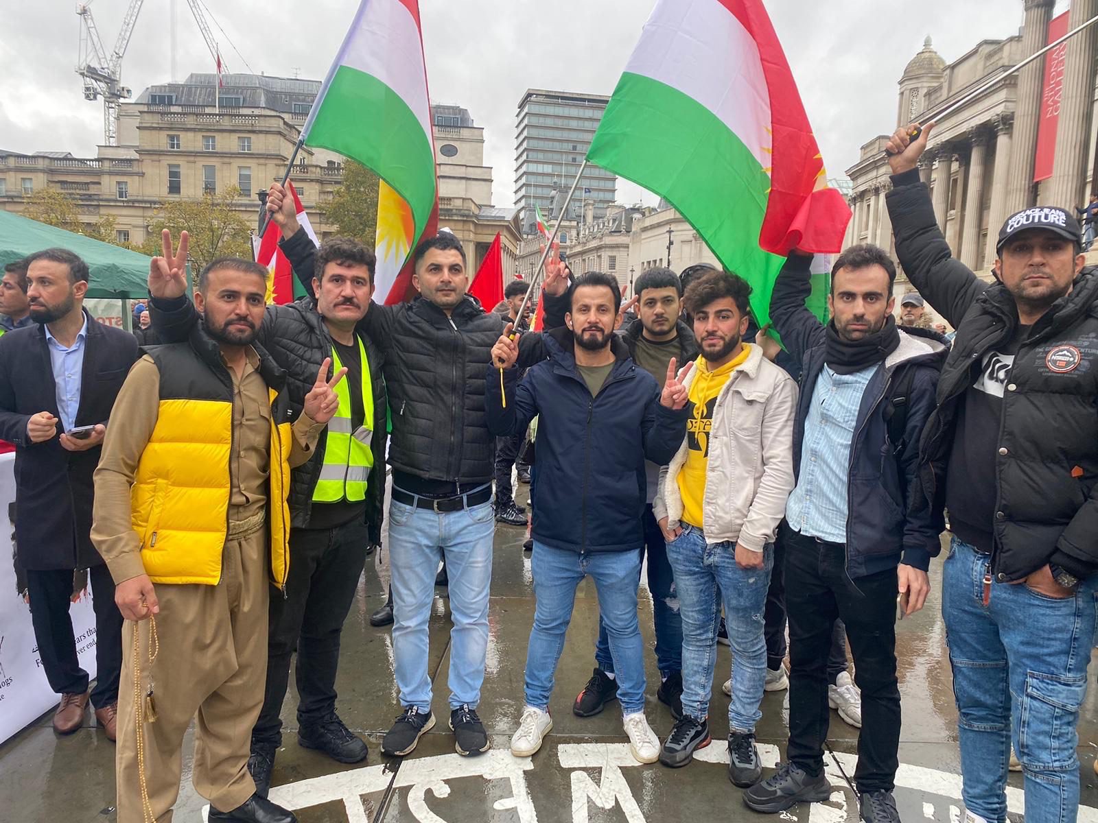 Bi armanca şermezarkirina kiryarên nemirovane yên Komara Îslamî ya Îranê li dijî xwepêşanderên Rojhilatê Kurdistanê û neteweyên din ên Îranê, navenda rewanda Kurdistanî beşdarî xwepêşandanekê bû ku li meydana Traphalgar a Londonê hatibû lidarxistin