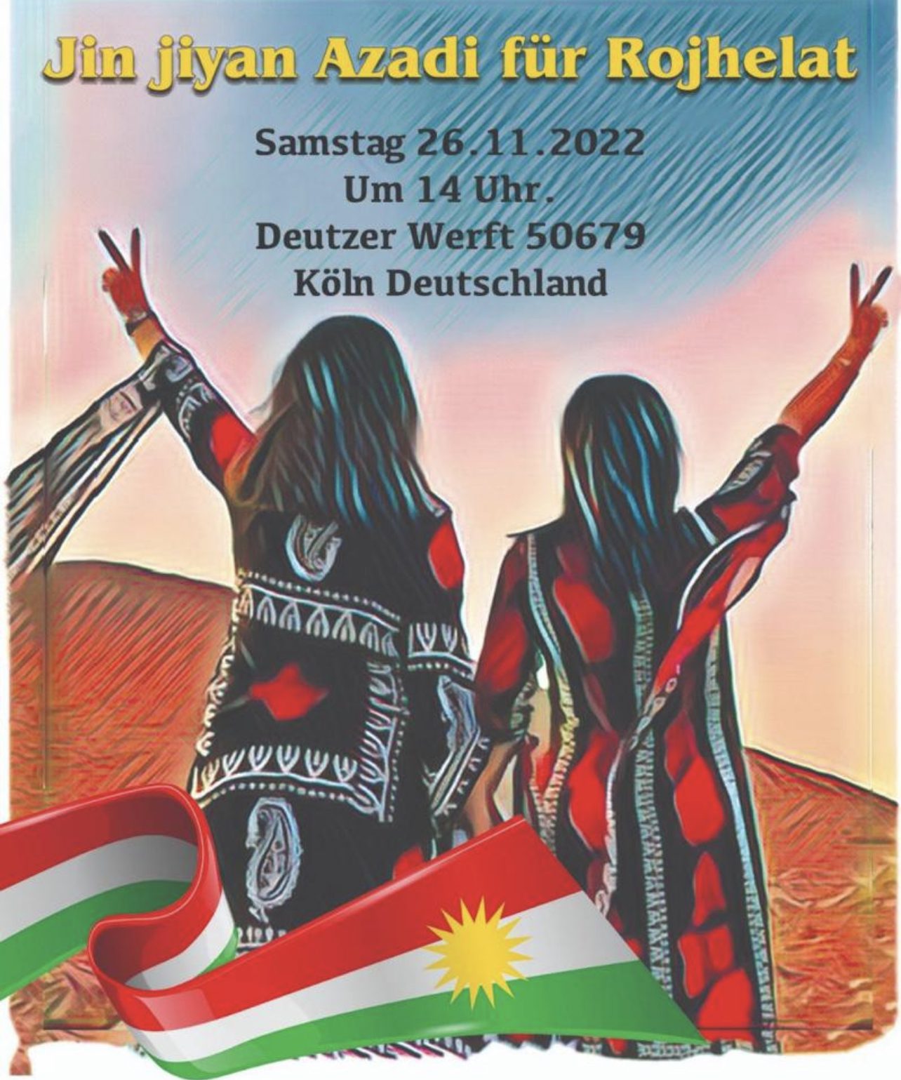 Em bang li hemû wekheviyên welatên Ewropayê û bi taybetî jî bang li gelê Elmanyayê dikin ku beşdarî anîna ala Kurdistanê bibin û bi dirûşma jin, jiyan û azadiyê ya Hamaseke din a li bajarê Kolnê tevlî bibin