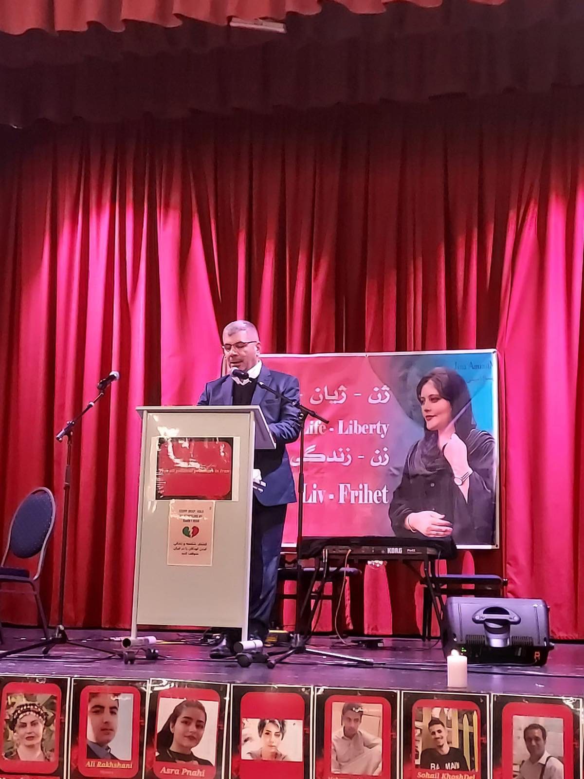 Navenda Rewanda Kurdistanê-Norwecê di merasîmeke taybet de bo piştgîrî kirina şoreşa jîna Emînî li Rojhilatê Kurdistanê ku têde berpirsê navendê peyveke taybet pêşkêşî amadebûyan kir