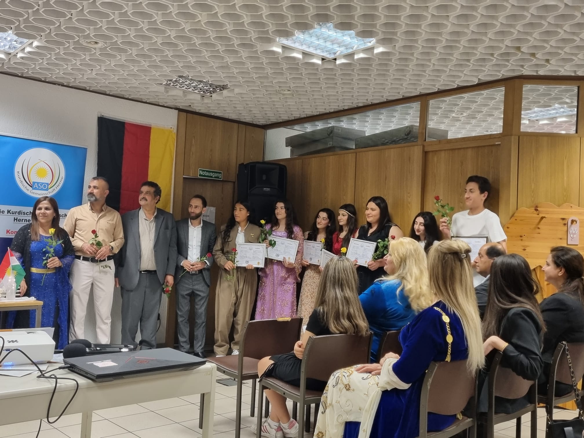 Di 27.08.2023an de Komela Aso li bajarê Hêrnê li Elmanyayê derçûna komek ji xwendekaran di warê zimanê kurdî de pîroz kirin û bawername li wan belav kirin, xwendekarên ku bawernameya lîsansê bi dest xistine hatin rêzgirtin û xelatkirin .