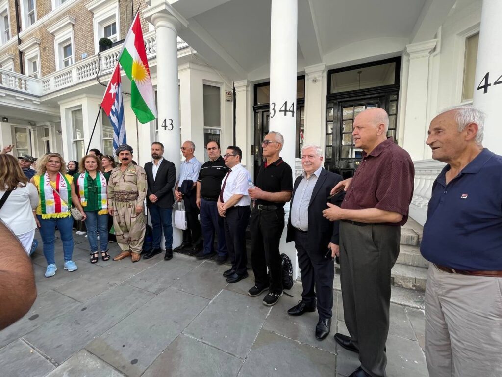 Navenda Revenda Kurdistanî li Brîtaniya, li ber Balyozxaneya Îraqê li Londonê xwepêşandanek li dar xist.