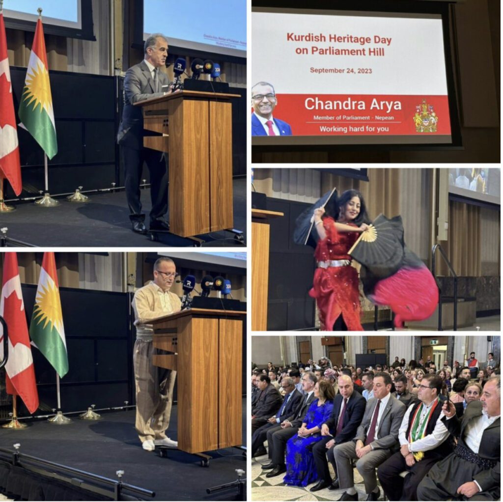 Roja Yekşemê 24/9/2023, Navenda Revenda Kurdistanî li Ottawa, bo yekem car şahiya çand û rewşenbîriya Kurdî li salona Parlamentoya Kanadayê bi beşdarbûn û piştgiriya Komeleyên Kurdên Ottawa û Gatineau û Mala Kurdî li Toronto birêve çû.