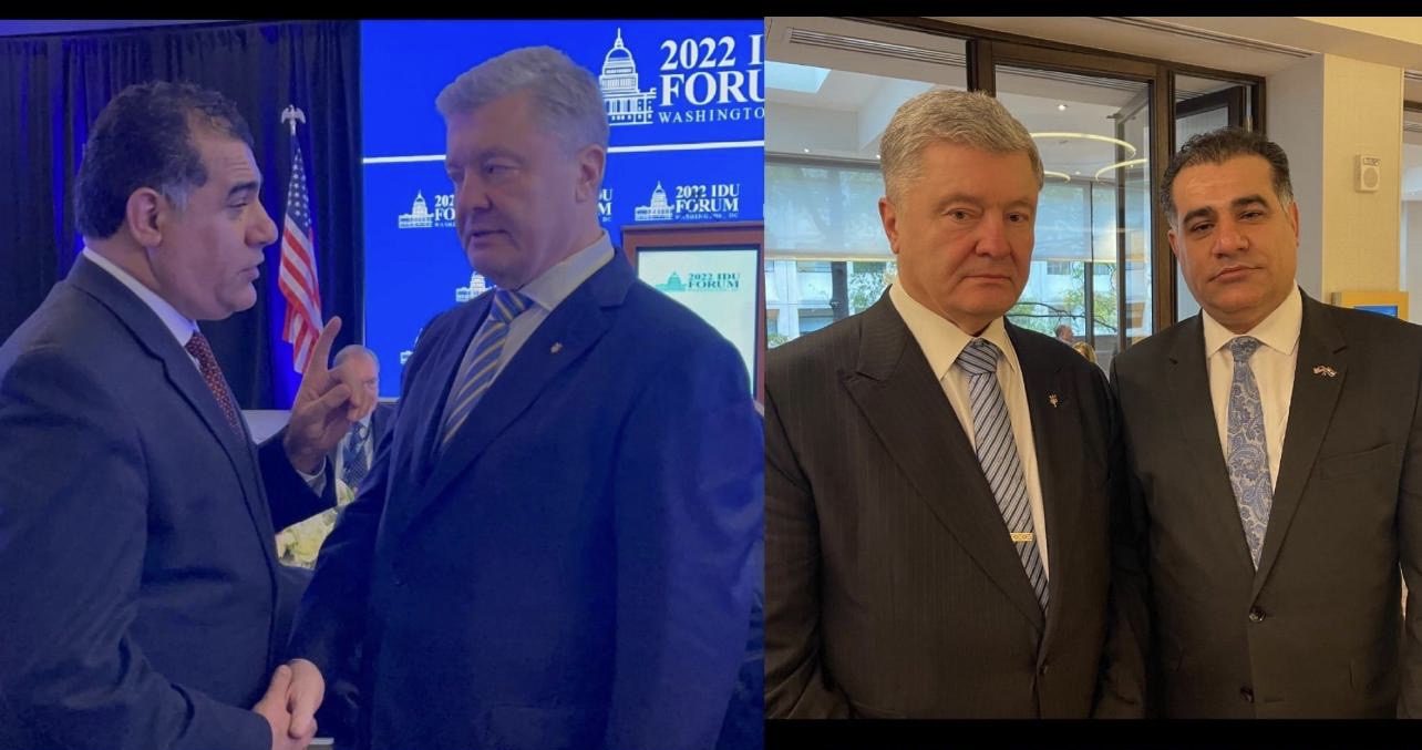 Rehîm Reşîdî, nûnerê Konfederasyona Revenda Kurdistanî li Amerîka û Kanada`yê, bi Serokê berê yê Ukrayna Petro Proşenko re hevdîtin pêk anî û ji ber wergirtina xelata Bush-Thatcher ji bo azadîyê, ku ji aliyê Foruma Demokrat a Cîhanê ve hatiye pêşkêşkirin, pîrozbahî li wî kir. Her wiha me behsa şerê Rûsya û Ukrayna û piştgiriya çekdarî ya Îranê ji Rûsyayê li dijî Ukraynayê hate kir. Rehîmî daxwaz ji rêzdar Petro hate kirin ku, pêgeha xwe ya navdewletî û pêla piştevaniya navdewletî ji welatê xwe bo têkdana siyasetên Tehranê bikar bîne û wisa got: Yekem Komara Kurdistanê bi xiyaneta Rûsyayê hilweşiya û Kurd tu carî quretiya Moskowê ya li hember armancên xwe ji bîr nakin.