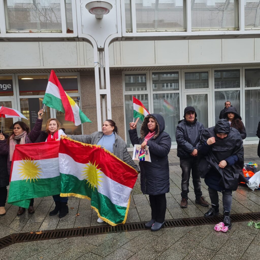 Di roja 29.12.2023’an de bi dirûşma ‘’ Bi aştiyê welat ava dibe’’, rêxistinên civaka kurd yê sivîl li Almanyayê li navçeya Nordrhein-Westfalen, ji bo şermezarkirina êrîşên dewleta Tirkiyeyê, li ser herêma Rojavayê Kurdistanê û li serxelkê sivîlên bê parastin, xwepêşandanek li dar xist. Di van erîşana de çavkaniyên wekî, bîrên neftê,elektirî, çavkaniyên avê jî ji armancên wan yê serekî ye. Bi vê yekê xelkê heremê bê elektirîk û bê av dihêlin û jiyan li xelkê zehmettir dikin. Bi taybetî di dema dawî de û bandoragelek xerab li ser jiyana li herêmê kiriye .
