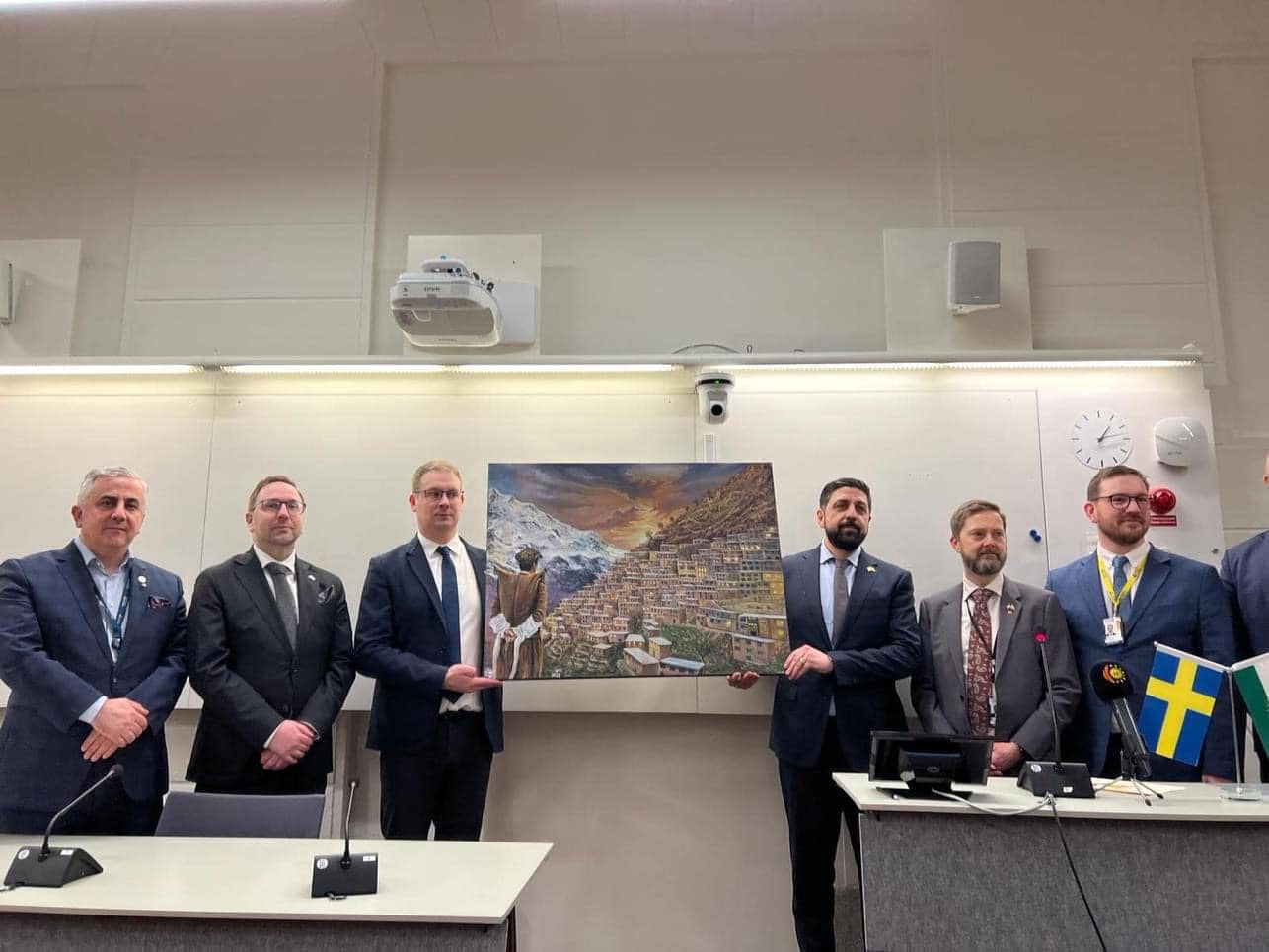 Ola Muller, nûnerê Hukumeta Herema Kurdistanê Şoreş Kadir, serokê FKKS´ê Berzan Koçkaya, li ser navê Naveda Revenda Kurdistanî Şermîn Bozarslan axavtinek pêşkeş kirin. Şoreş Kadir, piştî axaftina xwe tabloyek ku ji hunermendekî Helebçeyî ve hatibû çêkirin, pêşkeşî Komîteya Swêd-Kurdistan kir. Li ser navê Konfederasyona Revenda Kurdistanî jî Kovan Amedî beşdarî li civîna yadgirtinê kir. Di civînê de nûnerên partiyên siyasî yên Kurdistanî jî amade bûn.