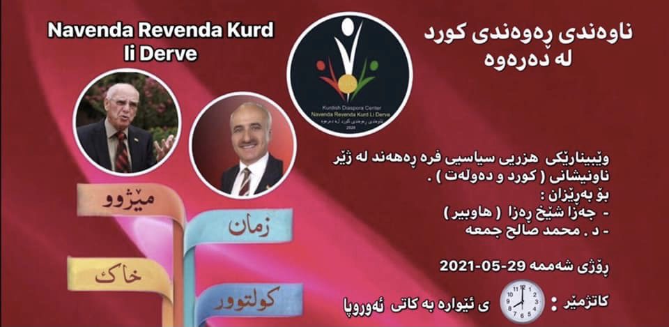 Konferanseke Taybet 08/06/202108/06/2021179 Konferanseke dê li ser hizra siyasi ya pirrengî di bin navê ( Kurd û dewletê ) de were li darxistin.Birêz: Ceza Şêx RezaD. Mihemed Salih Cema
