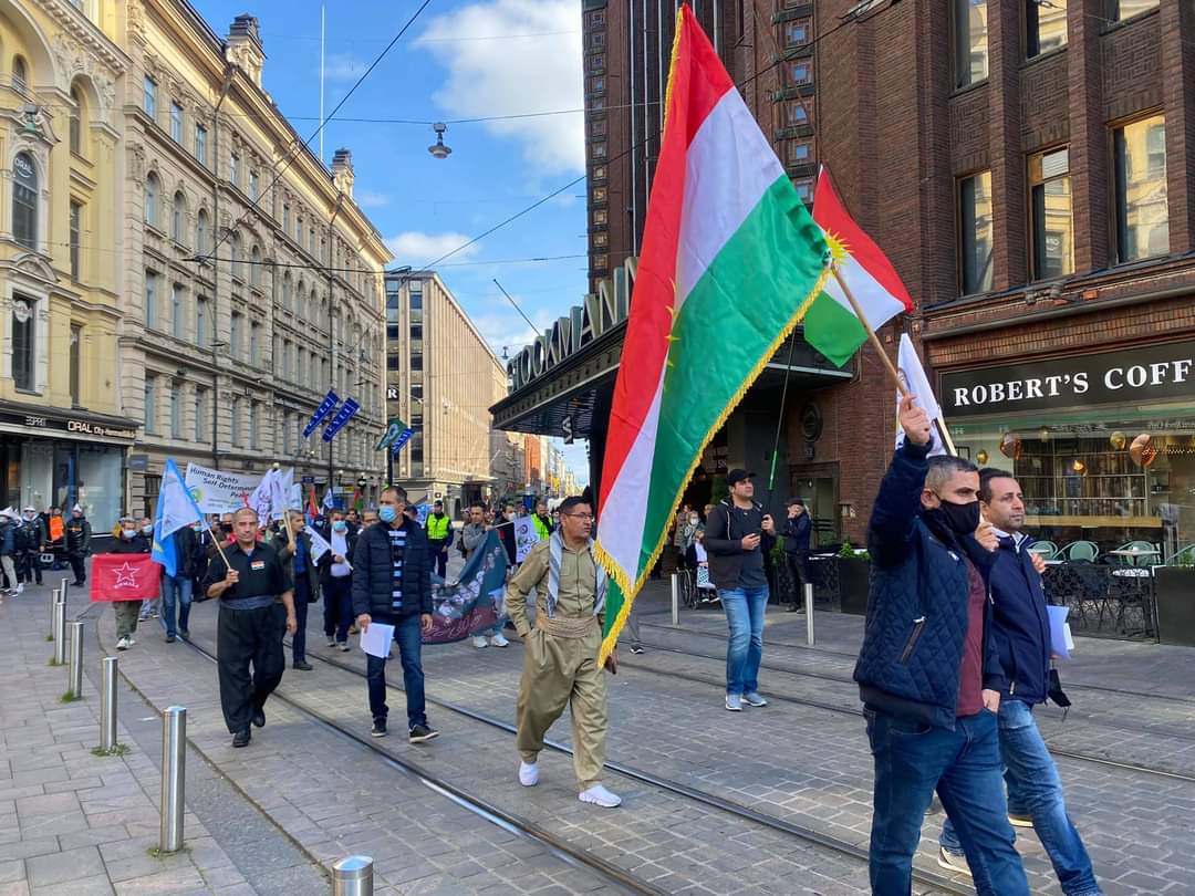 Doh di 16ê Îlona 2021an de Kurdên Finlendî li paytexta wî welatî, ji bo şermezarkirina êrîşên vê dawiyê yên Komara Îslamî li ser sînorê Rojhilat û Başûrê Kurdistanê û topbarankirina gund û binke û navendên partiyên Rojhilatê Kurdistanê xwepêşandan kirin.