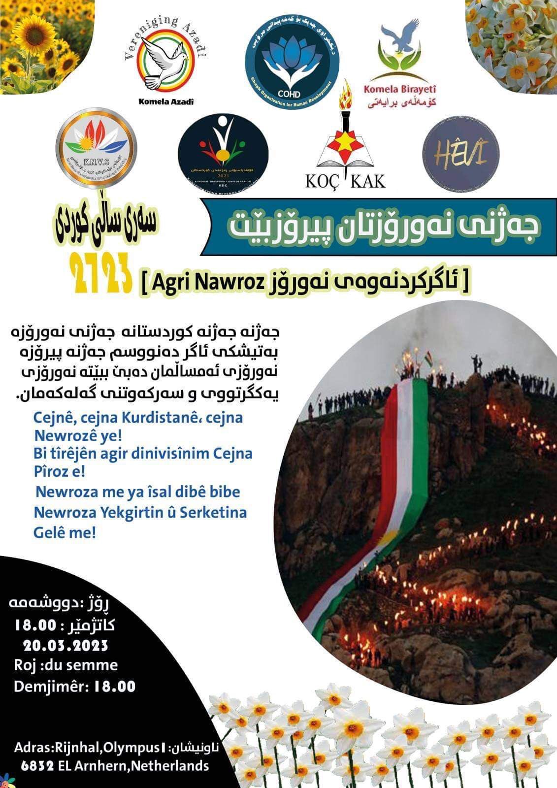 لەنێوەندی ئامادەکارییەکانی ڕەوەندی کوردستانی ،بەبۆنەی هاتنەوەی جەژنی نەورۆز و سەری ساڵی کوردی ،کۆمەڵەو ڕێکخراوی کوردی و هۆڵەندی مەراسمێک بەوبۆنەوە سازدەکەن