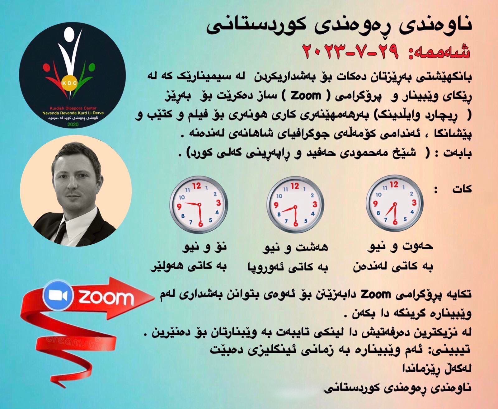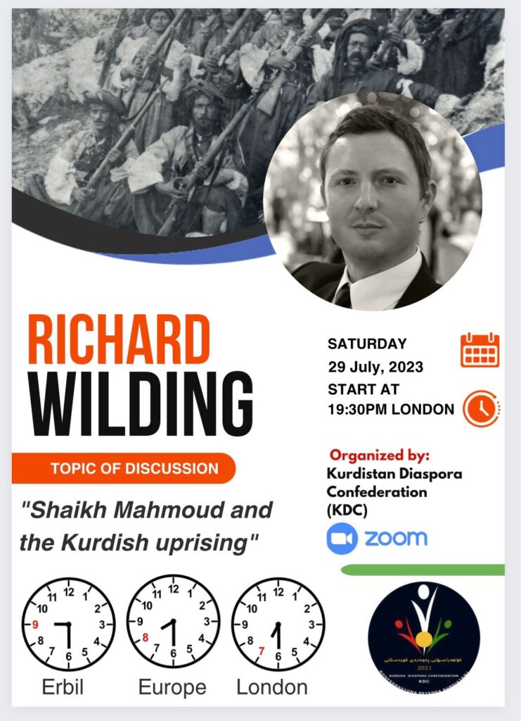 ئێوارەی شەممە، رێککەوتی 29ی7ی2023، کۆنفدراسیۆنی ڕەوەندی کوردستانی، وێبنارێکی تایبەت لەسەر بەرهەمهێنانی فیلمی دۆکیۆمێنتاری (شێخ مەحمود و پەیوەندی 100 ساڵەی کورد و بەریتانیا)، لە ڕێی بەرنامەی zoom، بۆ (ریچارد وایڵدینگ) بەڕێوەبەری رێکخراوی گوڵانی خێرخوازی بۆ بەرەوپێشبردنی کولتووری کوردی لە بەریتانیا ساز دەکرێت، کە بە زمانی ئینگلیزی دەبێت.