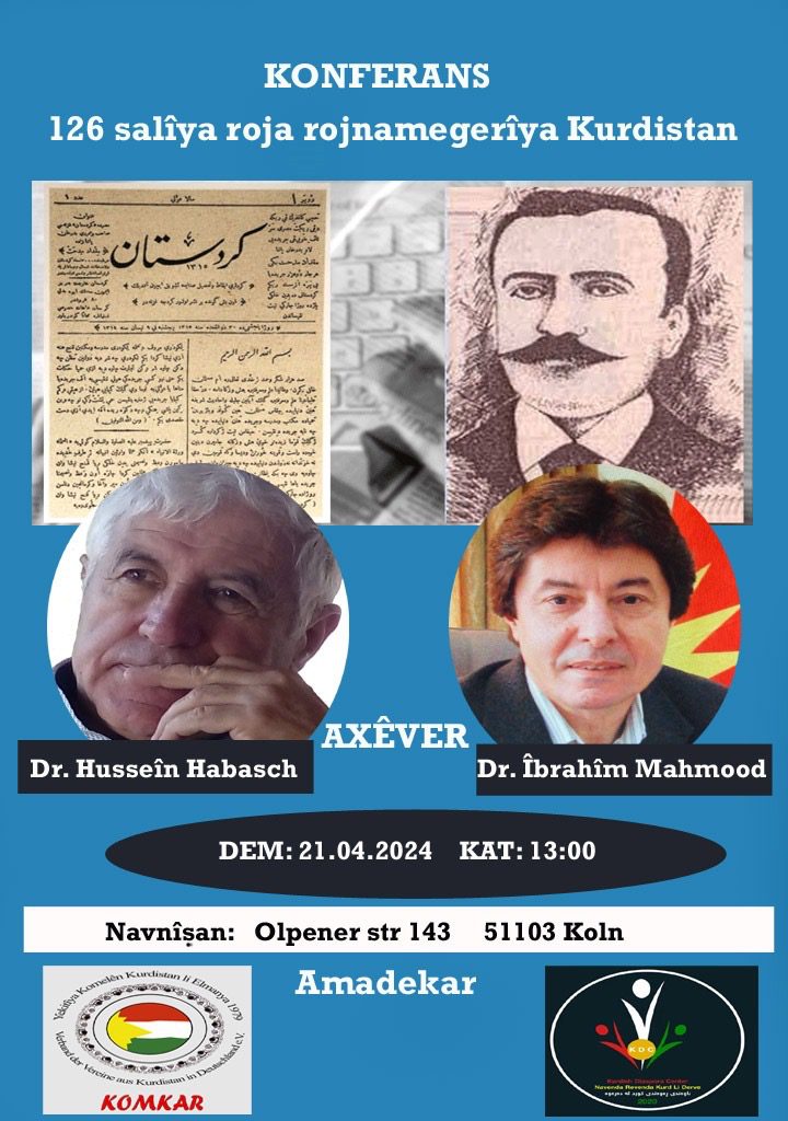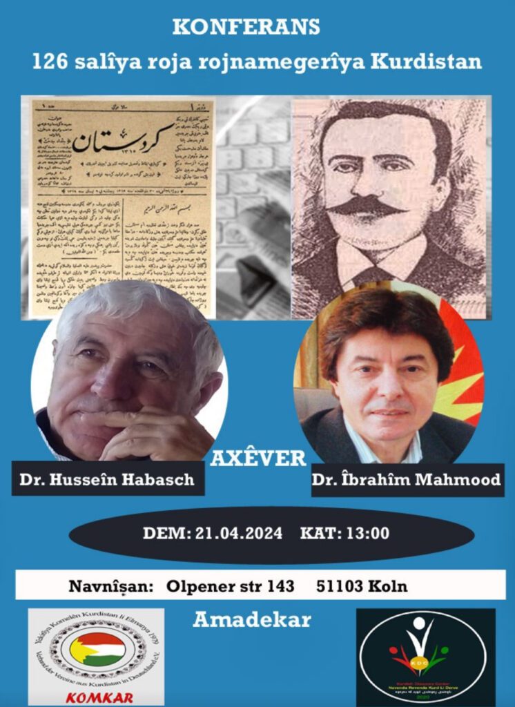 ناوەندی ڕەوەندی کوردستانی-دوسلدۆرف و کۆمکار، بە بۆنەی ١٢٦ ساڵەی دەرچوونی یەکەم ڕۆژنامەی کوردی لە شاری قاهیرەی پایتەختی میسر سیمینارێک سازدەکەن.