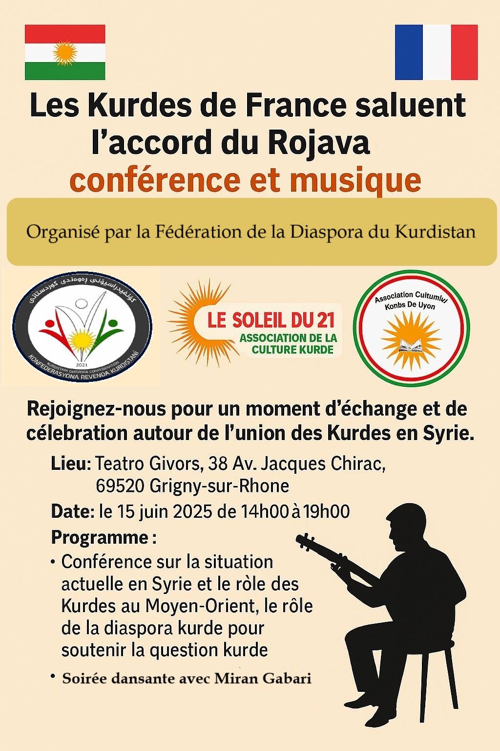 لەو پێناوەدا، داوا دەکرێت لە کات و شوێنی دیاریکراو، کە لەسەر وێنەکەیە، کوردانی نیشتەجێی فەرەنسا بەشداری بکەن.