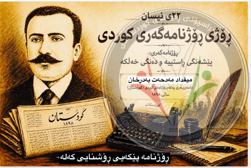 بەبۆنەی 22ی نیسان، یادی 128 ساڵەی دەرچوونی یەکەم ڕۆژنامەی کوردی بە ناوی کوردستان و ڕۆژی ڕۆژنامەگەریی کوردی، گەرمترین پیرۆزبایی ئاراستەی سەرجەم ڕۆژنامەنووسان، نووسەران و ڕاگەیاندنکارانی کوردستان و ڕەوەندی کوردستانی لە سەرتاسەری جیهان دەکەین.