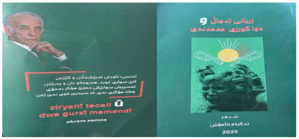 دیوانەکە بە ناونیشانی: {زریانی تەجاڵ و گورزی مەمەندی}ییە و لە دووتوێی٢٨٥ لاپەڕەدایە و د. ئازاد ئەحمەد مەحموودپێشەکییەکی بەپێزی بۆ نووسیووە.. هەڵسەنگاندنێکی جوانی بۆ شاعیر و شیعرەکانی کردووە.
