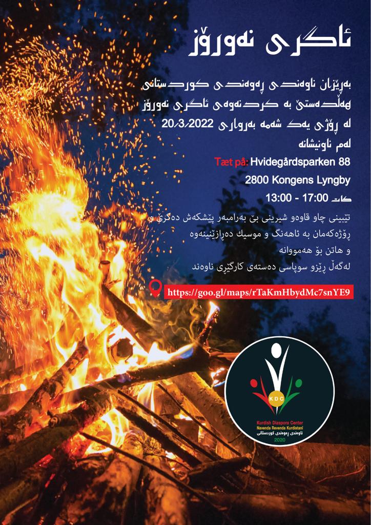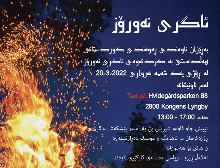 دەستەی کارگێڕی ناوەندی ڕەوەندی کوردستانی لە دانیمارک، ریگەیاند، کە رۆژی یەک شەممە رێککەوتی 20ی3ی2022، بە هۆی هاتنەوەی سەری ساڵی کوردی، جەژنی نەورۆز، لەو وڵاتە ئاگری نەورۆز دەکەنەوە و تێیدا شیرینی و خواردنەوە بێ بەرانبەر بە ئامادەبوان دەدرێت و، رۆژەکەیان بە ئاهەنگ و میزیک دەڕازێننەوە.