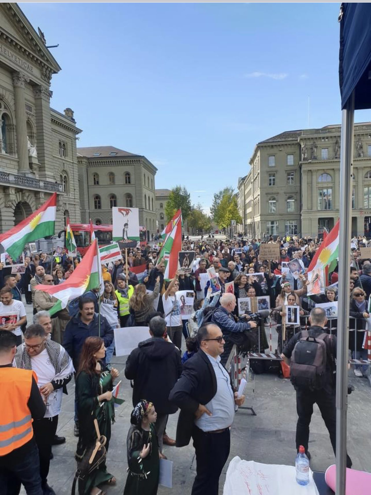 ئەمڕۆ شەممە 25.10.2022لە بەردەم پەرلەمانی سویسرا لەشاری بێرن کوردستانیان لەدژی کوشتنی کچە کوردی ڕۆژهەڵاتی کوردستان ژینا ئەمینی 22 ساڵ و کارە سەرکێش و سەرکوتکارییەکانی ڕژێمی تاران ،هەروەها لە پێناو پشتگیری خۆپیشاندان و ناڕەزاییەتیەکانی گەلانی ئێران گردبوونەوەی جەماوەریان ڕێکخست