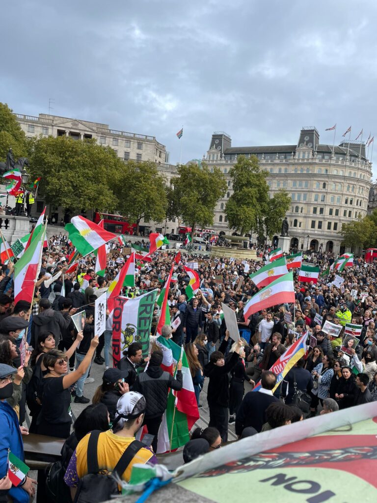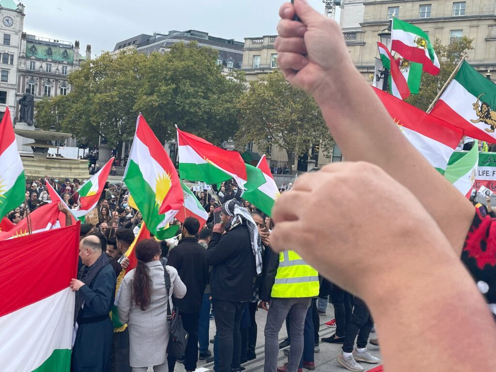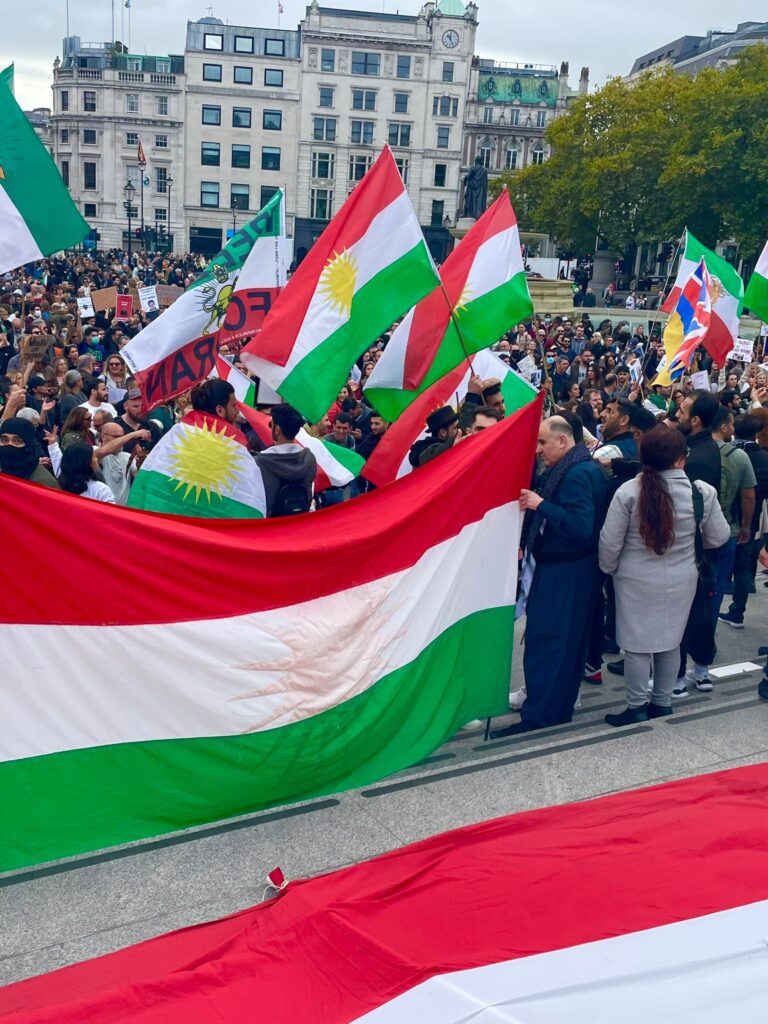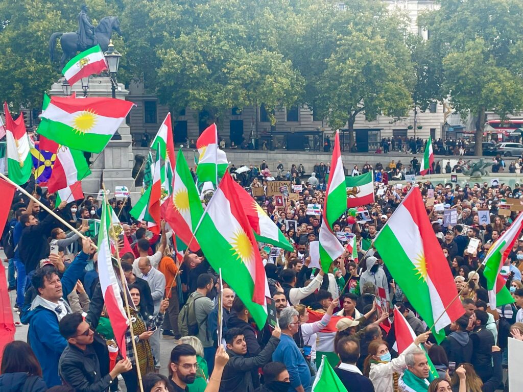 بەئامادەبوونی کوردستانیان بە ئاڵای پیرۆزی کوردستان بەهاوبەشی گەلانی ئێران دژی کوشتن ژینا ئەمینی کچە کوردی شاری سەقزی ڕۆژهەڵاتی کوردستان و توندتیژی هێزی داگیرکەری بەرامبەر خۆپیشاندەران پشتیوانی گەلانی ڕاپەڕیوی ئێران کۆبوونەوە و رەفتارو سەرکێشییەکانی کۆماری ئیسلامیان شەرمەزار کرد و بەدەنگی بەرز هاوخەمی قوربانیان دەنگی ئازادی و سەربەستی گەلانی ئێران بوون