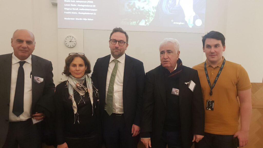 ئەندامی دەستەی سیمینارەکە پێک هاتبوون ،لە خالید عەزیزی، وتەبێژی حزبی دیموکراتی کوردستانی ئێران ،ماگنوس نۆرێل، شارەزا و توێژەری ڕۆژهەڵاتی ناوەڕاست ،هانس ئێکسترۆم – پەرلەمانتاری پارتی سۆسیال دیموکراتەکان و فرێدریک مالم، پەرلەمانتاری پارتی