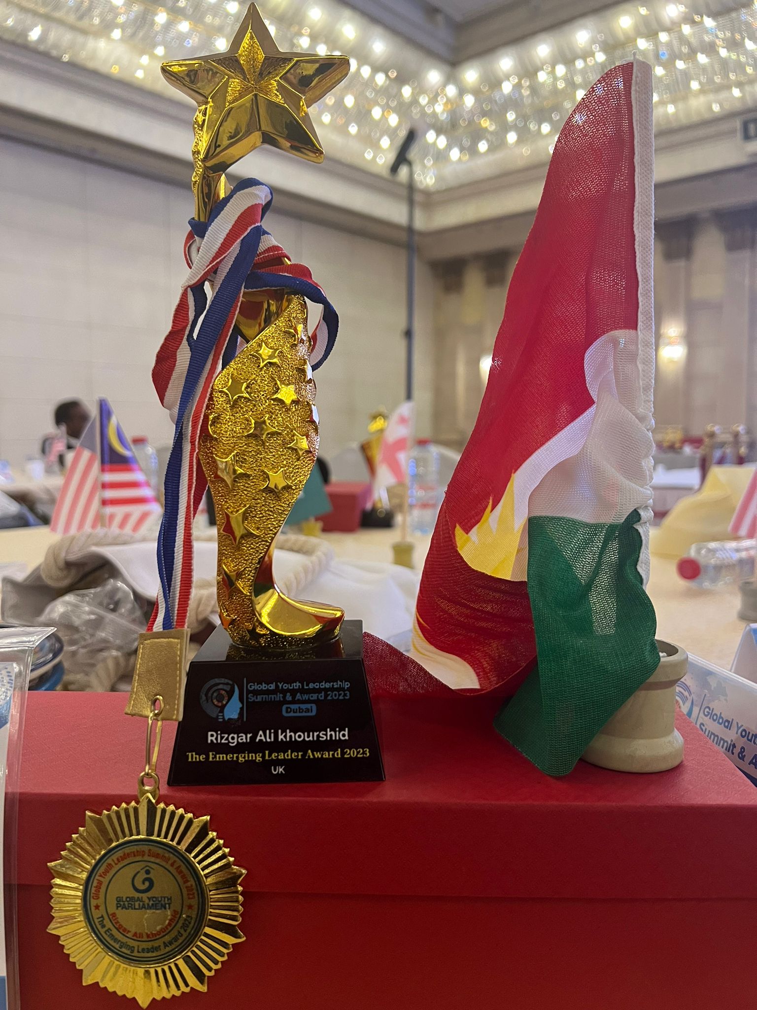 رزگار شێخ عەلی بەرپرسی ناوەندی ڕەوەندی کوردستانی لەشاری لەندەنی پایتەختی بەریتانیا خەڵاتی رێزلێنانی سەرکردایەتی لاوانی جیهانی وەرگرت
