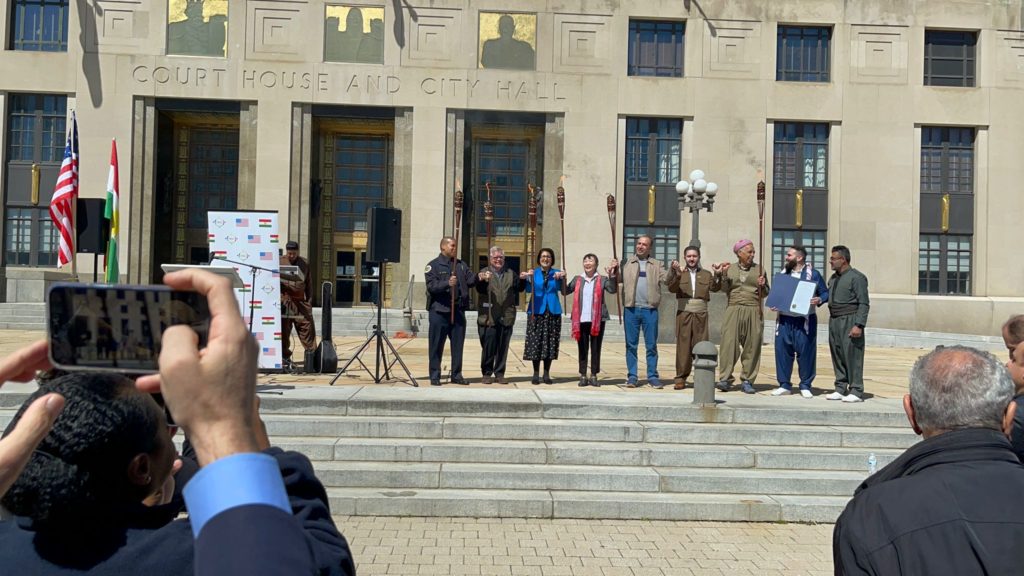 رۆژی دووشەممە، رێککەوتی 20ی ئازاری2023، مستەر کورد نوێنەری کۆنفدراسیۆنی رەوەندی کوردستانی لە ئەمەریکا و کەنەدا، لەگەڵ شارەداری ناشڤیل و بەرپرسانی دیکەی حکومەت گفتوگۆی کرد و، دەستخۆشی لە بە فەرمیی ناساندنی جەژنی نەورۆزی ئاڕاستە کردن و، پێشی راگەیاندن، کە کوردستانیان پێزانینی زۆریان بۆ ئەو هەنگاوە هەیە.