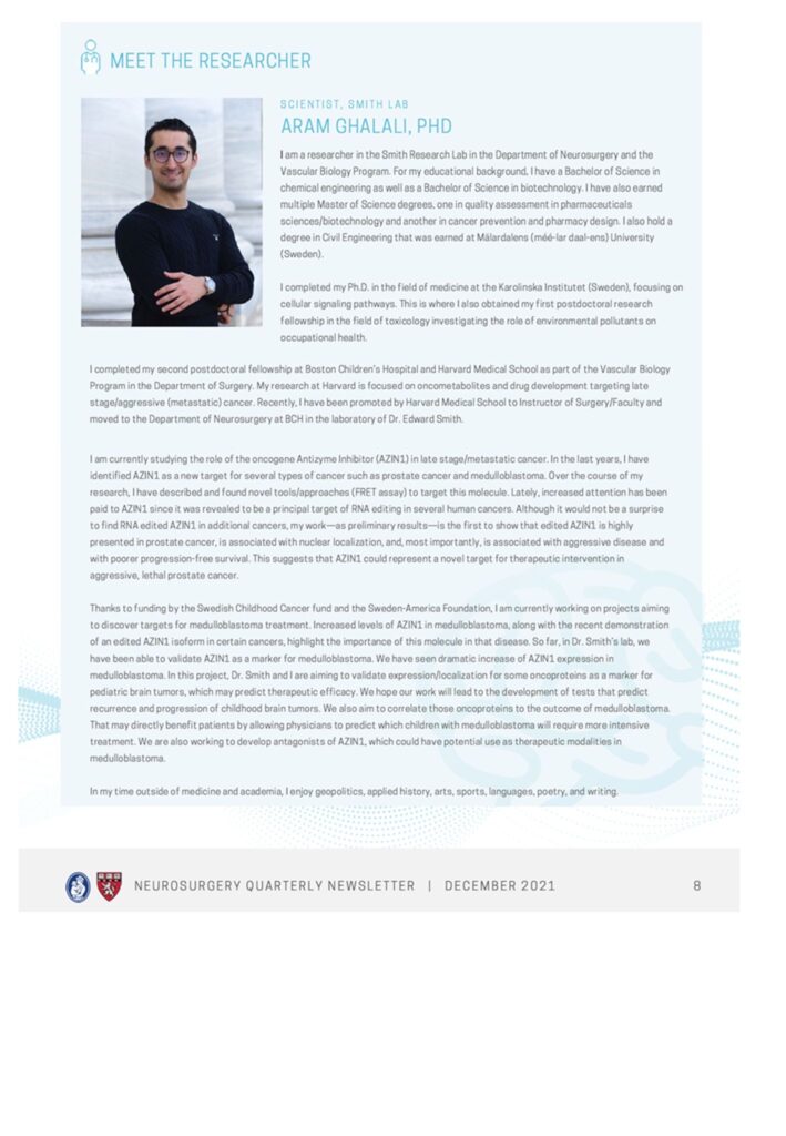 ئارام گەڵاڵی پڕۆفیسۆری یاریدەدەر لە زانکۆی هارڤەرد لە ئەمریکا، بەهۆی توێژینەوەو دۆزینەوەکانی لە بواری پزیشکی و شێرپەنجەی مێشک، خەڵاتی رۆشنترین مێشکی رۆژهەڵاتی نێوەڕاست و باکووری ئەفریقا بۆ ساڵی 2023 پێدراوە.