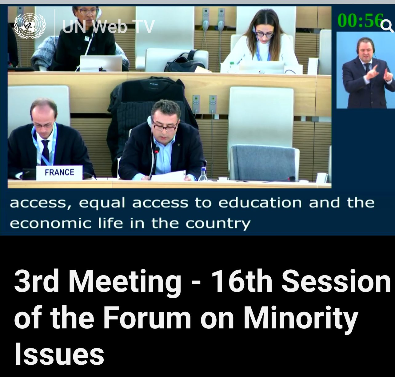 جێی ئاماژەیە، نەتەوەیەکگرتووەکان بۆ ماوەی دوو ڕۆژ لە شاری جنێفی سویسرا کۆڕبەندێکیان بۆ پرسی کەمینەکانی وەک، نەتەوە و ئایین و ئایینزا و کێشە کۆمەڵایەتی و ئابوورییەکان و توندوتیژییەکانی لە جیهاندا بەڕێوەبرد. ئەم کۆربەندە بە بەشداری نوێنەری وڵاتانی ئەندام لە نەتەوەیەکگرتووەکان و ڕێکخراوە جۆربەجۆرەکانی NGOبەڕێوەچوو و، تێیدا گفتوگۆی کراوە لەسەر پرسی کەمینەکان لە جیهاندا تاوتوێکران.