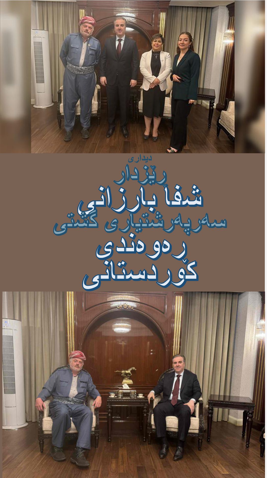 ڕۆژی شەممە ڕێكەوتی ٢٤ی ٥ی٢٠٢٥، بەڕێز شیفا بارزانی سەرپەرشتیاری گشتیی ڕەوەندی كوردی پێشوازییەكی گەرمی لە بەڕێزان شیرین زەكی سەرۆكى فێدراسیۆنی ژنانى دياسپۆراى كوردستانی، بێرند بلانک سەرپەرشتیاری گشتیی پڕۆژەكان لە مافی مرۆڤ SOS Menschenrechte، و هیوا حسێن -بەڕێوەبەری پڕۆژەی مافی مرۆڤ لە SOS Menschenrechte، كرد.