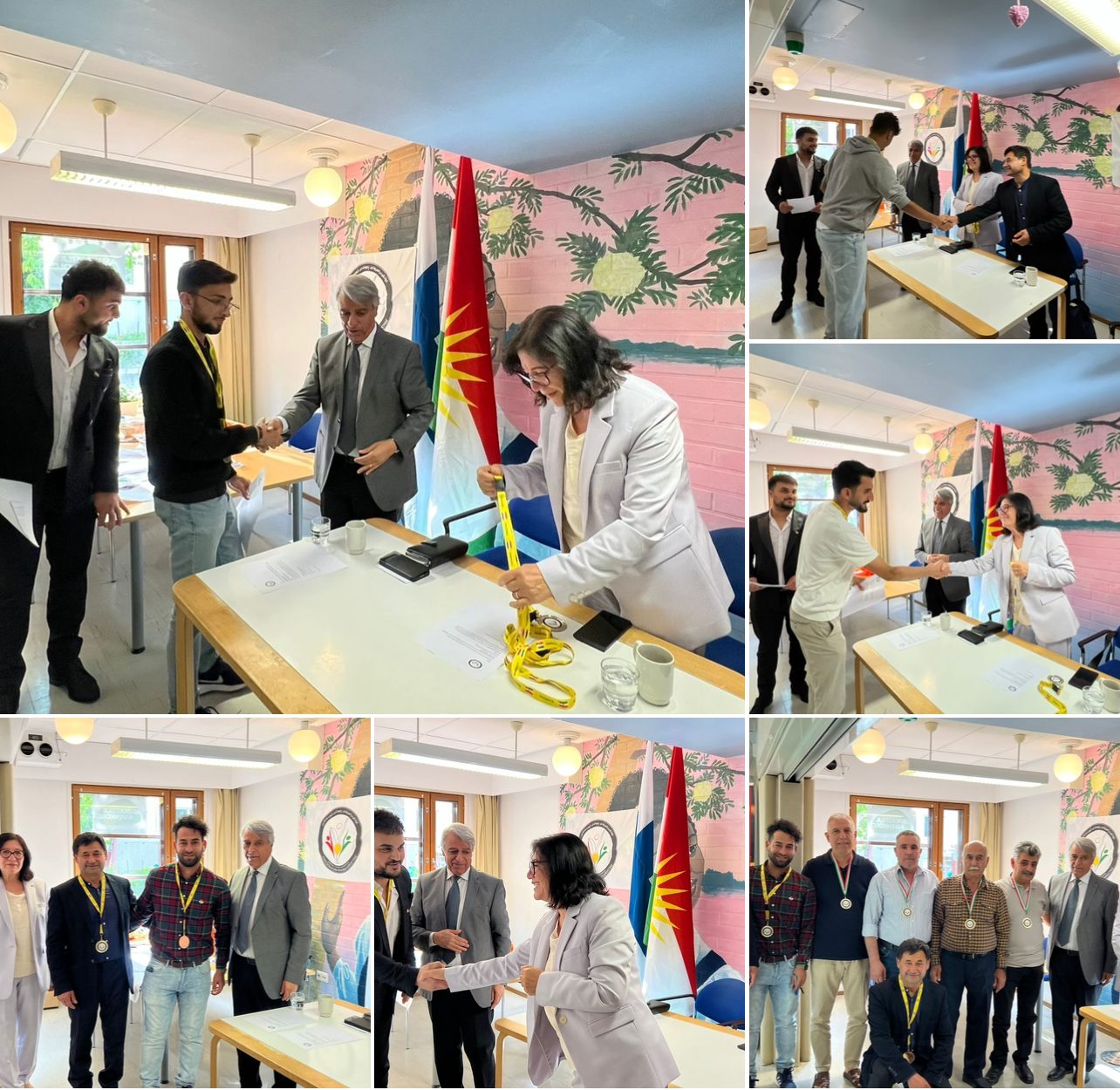 دواتریش بۆ بەرزڕاگرتنی ئاڵای کوردستان، تیپی تۆپی پێی کوردستان لە فینلەندا خەڵات کران، کە سەرۆکی کۆنفیدراسیۆن، مەدالیا و نامەی پیرۆزبایی پێشکەش بە ئەندامانی تیپەکە کرد.