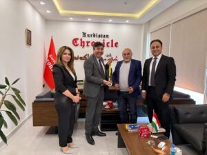 ئەمڕۆ پێنجشەممە ٦\١١\٢٠٢٥، شاندێكی كۆنفیدراسیۆن، كە پێكهاتبوون لە بەڕێزان قارەمان عوسمان بەرپرسی نووسینگەی شفا بارزانی، شوكری بەرواریی جێگری سەرۆكی كۆنفیدراسیۆن و هەرمن ئەحمەد بەرپرسی ئۆفیسی راگەیاندنی كۆنفیدراسیۆن و سەرنووسەری گۆڤاری (رەوەند)، لە شاری هەولێری پایتەخت سەردانی ئۆفیسی سەرەكیی دامەزراوەی كوردستان كرۆنیكڵیان كرد و گفتوگۆیەكی چڕ و وردیان لەسەر پەرەپێدانی هەماهەنگیی پەیوەندییەكانی نێوان هەردوو لا کرد.