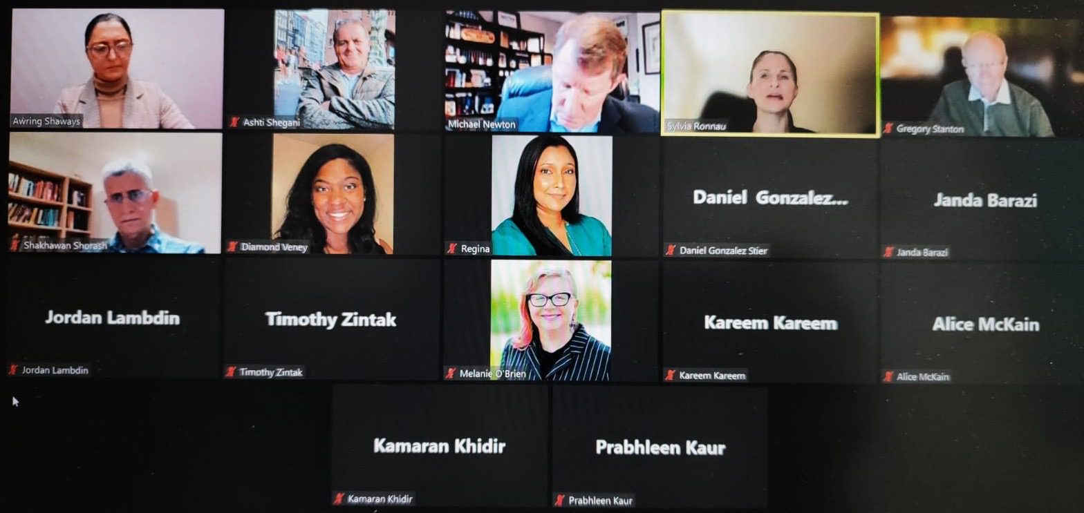 لەسەر داوای ڕێکخراوی کەی جی لۆبی سەنتەر لە ١٠ / ١ / ٢٠٢٤ کاتژێر ٦ ئێوارە بەکاتی ئەوروپا وێبینارێکی ڕێکخست کە ١٨ ئامادە بوی تێدا ئامادە بوون لە کەسایەتی شارەزاو پسپۆڕ لە بوارەکانی کۆمەڵکوژی و جینوساید وە پرۆفیسیورو توێژەرو پارێزەر و ڕاوێژکار و ڕۆژنامەنووس و پسپۆڕی لە لێکۆڵینەوەی زانستی بۆ جینوساید کە بریتی بوون لە :