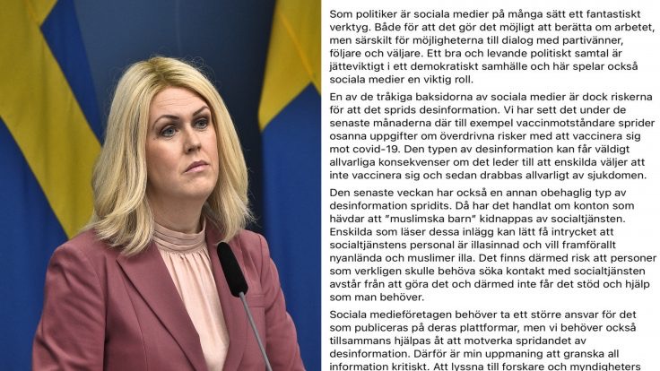 لینا هالینگرین، وەزیری کاروباری کۆمەڵایەتی رایگەیاند، هەفتەی رابردوو زانیاری هەڵە و چەواشەکارانە لە تۆڕە کۆمەڵایەتییەکانەوە بڵاوکراونەتەوە، کە گوایە منداڵانی موسڵمان لەلایەن خزمەتگوزارییە کۆمەڵایەتییەکانەوە ڕفێنراون.