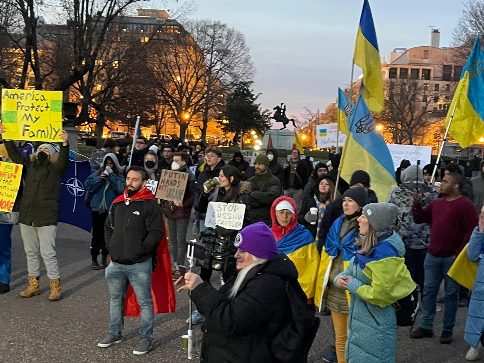 لە واشتنی پایتەختی ئەمەریکا و لە بەردەم کۆشي سپی رەوەندی ئۆکرانی خۆپیشاندانێکی بەرفراوانی لەبەردەم کۆشگی سپی ساز کرد و بە درووشمی جۆراوجۆر پشتیوانیان بۆ خەڵک و وڵاتی ئوکراینا نیشاندا.