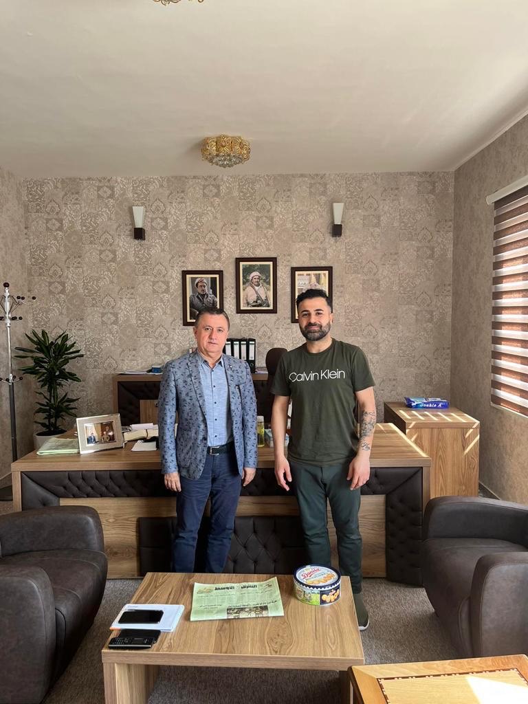 بەرپرسی دیسکی ڕەوەندی کوردستانی لە ئۆفیسی خۆیی، پێشوازی لە ئەندامێکی لیژنەی تۆپی پێی DANKURD کرد.