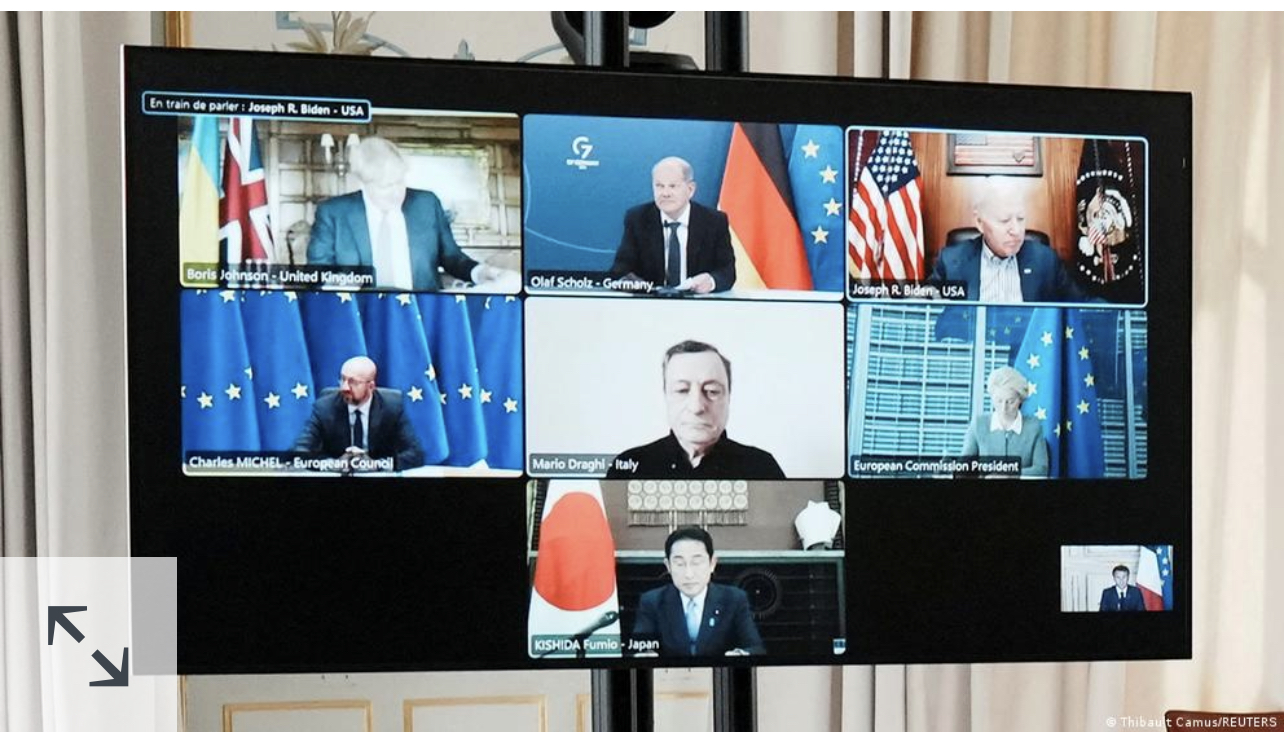 ئەمەو سەرکردەکانی وڵاتانی گروپی جی 7کەپێک دێت لە وڵاتانی ئەمەریکا ،بەریتانیا،فەڕەنسا،کەنەدا ،ئیتالیا و،یابان و ئەڵمانیا لە کۆبوونەوەی ڕۆژی هەشتی ئەم مانگە ،کە بەبۆنەی ساڵیادی کۆتای و ڕزگارکردنی ئەوروپا لە دەست فاشیزم و نازیزمی ،وسەرکەوتنی هێزی هاوپەیمانان لە جەنگی جیهانی دووەم، لە ڕاگەیاندنێک دا پێش ئەوەی ڕوسیا بەهەمان بۆنەوە ئاهەنگی 77ەمین سەرکەوتن بگێرێت ،بەڵنیان دا کە گورزێکی گەورە لە ئابوری و وزەی ڕوسیا بەهەموو شێوەیەکی واز لە وزەی ڕوسیا بهێنن