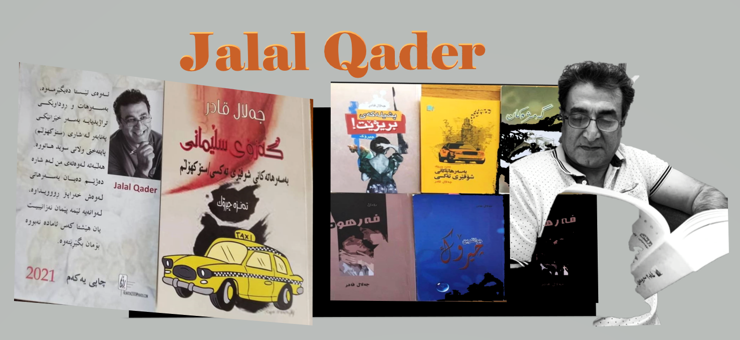 جەلال قادر لەساڵی ١٩٦٤ لە گەڕەکی ڕەحیم ئاوا لە شاری کەرکوك لەدایك بووە ئێستا لە ووڵاتی کەنەدا دەژیت ، قوتابخانەی ئامادەیی تەواو کردوە ، لە کۆلیژی مامۆستایانی موسڵ وەرگیراوە ، بە هۆی ئەوەی نەبوو بە عسی نەیتوانی دەوام بکات ، لەسەرەتایی نەوەتەکانەوە خولیای نوسین بووە ، یەکەم و دووەم کورتە چیرۆکی لە گۆڤاری سروە بڵاو کردۆتەوە ،کاری هونەری فۆتۆگرافی کردوە وە گرنگی دواوە بە میوزیك و بۆ ئەو مەبەستە کۆرسی فوتوگرافی بینیوە ، لە ساڵی ٢٠٠٤ وە گەڕاوەتەوە کەرکوك و وەکو مامۆستایەکی سیناریو و فۆتۆگرافی لە بەشی بینین و بیستن لە تەلەفزیون کاری کردوە ، مامۆستا بووە لە پەیمانگای هونەرە جوانەکانی کەرکوك ، یەکەم ڕۆمانی بەناوی ( فەرهود ) لە سەر ئەرکی یەکێتی نوسەرانی کەرکوك بڵاو کردۆتەوە ، ناوەڕوەکی ڕۆمانەکە باس لە سەردەمی ڕەشبگیری میللەتی کورد دەکات لەساڵانی ١٩٦٣ واتە حەرەس قەومیەکان وفەرهود کردنی خەڵکی شاری کەرکوك ، ئۆڤلێتیسەردەمی گەمژەکان بڵاوکراوەیەکی تر کە باسی لە دوای ڕووخانی ڕژێمی بەغدا دەکات پاش ساڵی ٢٠٠٣ . ( جوانترین چیرۆك ) کۆمەڵە کورتە چیرۆکێکی لە خۆ گرتبوو ، چوارەم بەرهەمی مامۆستا جەلال قادر بریتی بوو لە ( پشیلەکەی برێژێت ) کە مامۆستا زۆر گرنگی بە کورتە چیرۆك و تەنز دەدات وە لە زۆربەی ماڵپەڕو ڕۆژنامەو بڵاوکراوەکاندا بڵاویان دەکاتەوە ، لەگەڵ ئەوەی لە بوارەکانی سینەما و تەلەفزیونشانۆدا کاری کردوە ، دواجار ئەزموونی چیرۆك نوسین بوو بەو جیهانەی کە هەموو خەونەکانی خۆی تێدا دۆزی یەوە ، چونکە کارێکە بە تاکە کەسی دەکرێت و وەکو خۆی دەڵێت لە ناخی خۆمدا قووڵتر دەبمەوە ، چونکە کاری سینەما و شانۆ بە گروپ ئەنجام دەدرێت ، ( بەسەرهاتی شۆفێری تاکسی ) تەنزئامێزە و چاپی یەکەم لەساڵی ٢٠٢١ لە چاپ دراوە ، لەسەر ئەرکی خانەی کەلتوور ، پاشان بڵاوکراوەی ئۆڤێلیتێکی ڕۆمانسی بەناوی ( خەونەکانی کەژاڵ ) .. مامۆستا جەلال قادر لە دونیای چیرۆك و تەنز و ڕووداوەکاندا ئەزمونێکی چڕو پڕی هەیە لە نێو کۆمەڵگا و گفتوگۆ نهێنی یەکانی نێو بازاڕدا کە گوێ بیستیان دەبێت و دەیانگوێزێتەوە بۆ نێو ئەو پرۆژەیەی کەهەردەم سەرقاڵێتی لە جیهانی ئەوینداری و مرۆڤایەتی و ڕووداوە تاڵەکان و ڕۆژگارە سەختەکانی غوربەت.. لە نوسینەکانیدا دەڵێت :