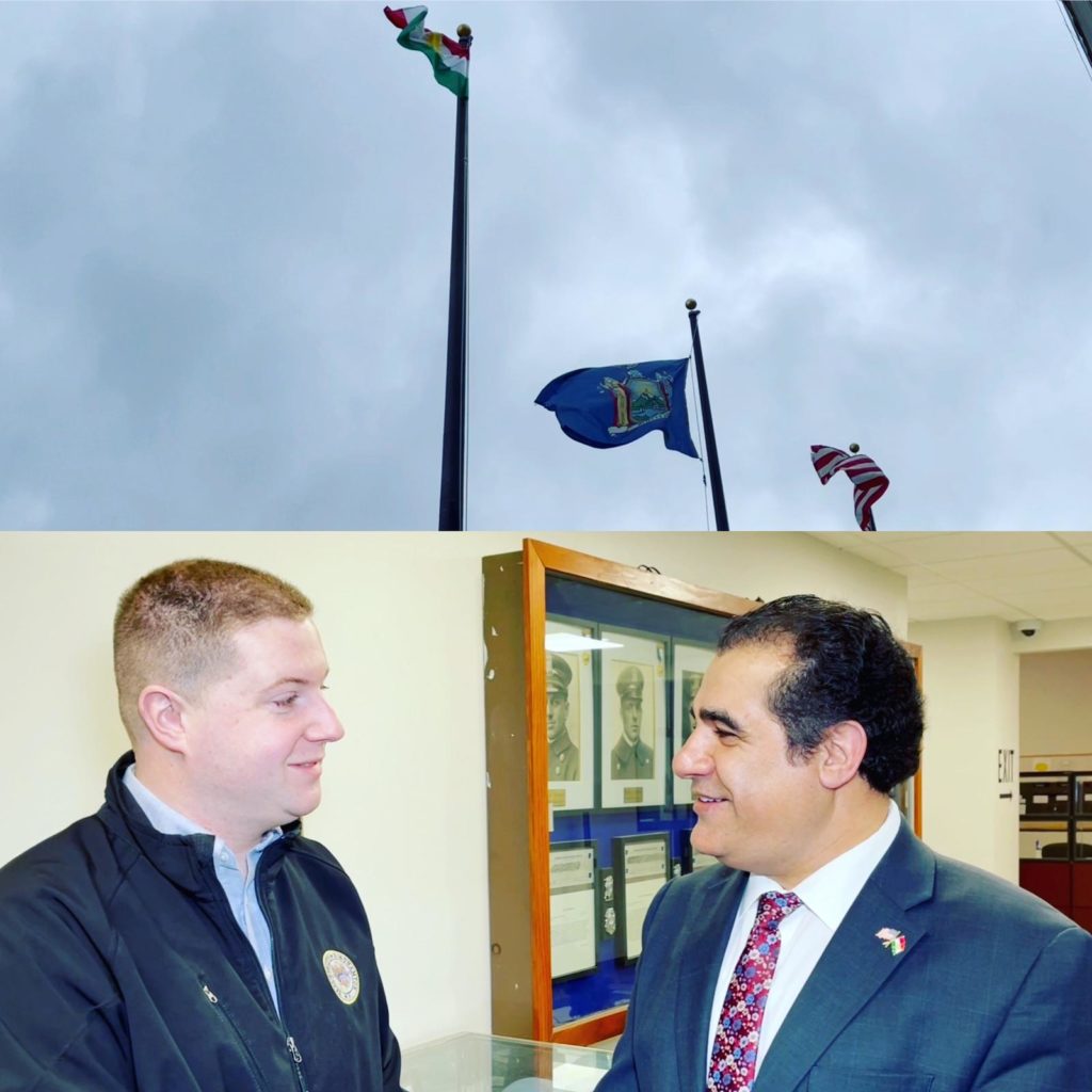 رۆژی هەینی، رێکەوتی 1ی مانگی 4ی 2022، لە کەشوهەوایەکی ساردو بارانی دا، بە ئامادەبوونی بەرپرسانی حکوومەتی و رەوەندی کوردستانی شاری بینگهامتۆن، لە ولایەتی نیویۆرک، ئاڵای کوردستان لەبەردەم بینای قائیماقامی شارەکەدا هەڵدرا.
