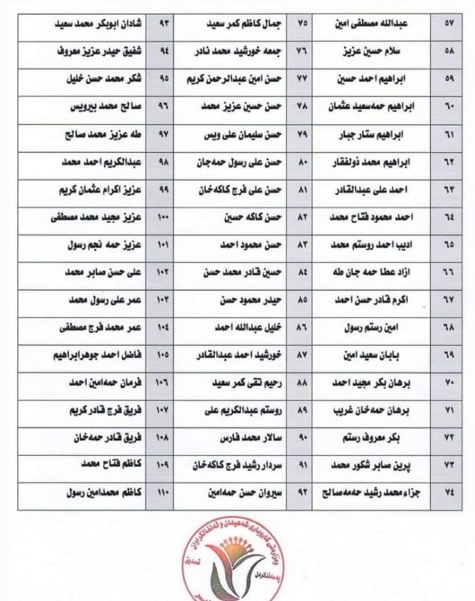 وەزارەتی كاروباری شەهیدان و ئەنفالكراوانی حكوومەتی هەرێمی كوردستان، ناوی تاقانەكانی جینۆساید لە هەرێمی كوردستان بڵاودەكاتەوە.