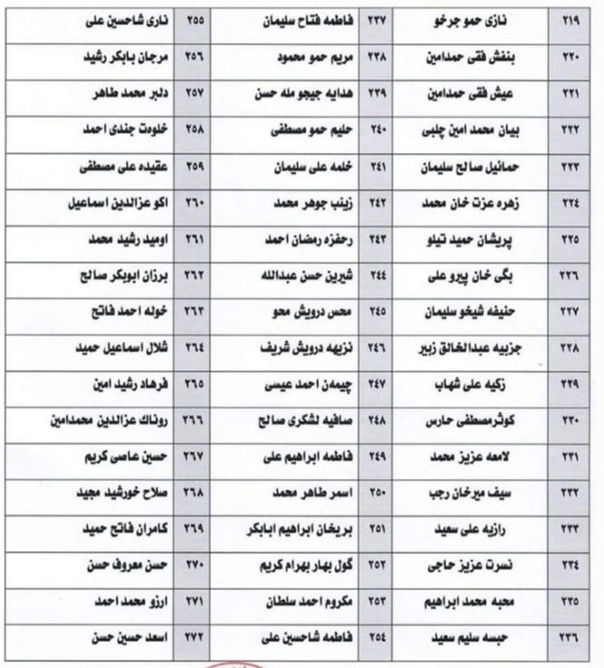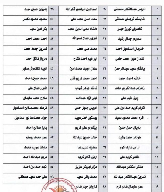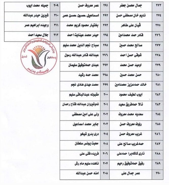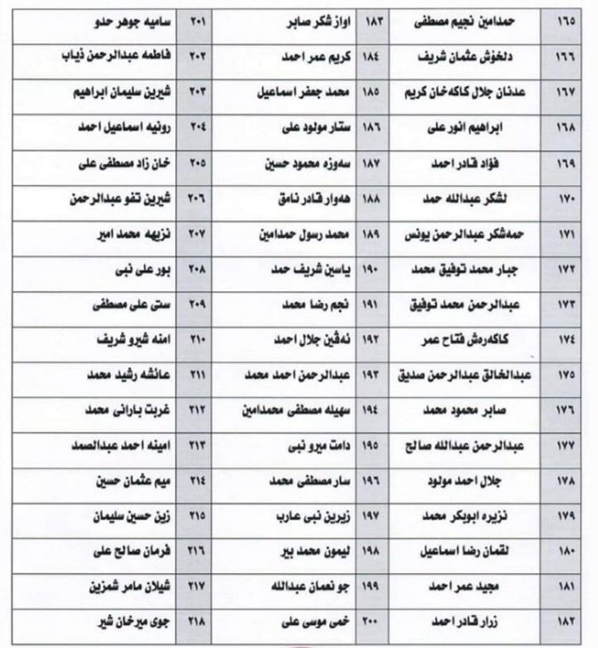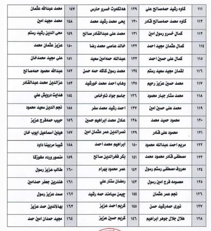 وەزارەتی كاروباری شەهیدان و ئەنفالكراوانی حكوومەتی هەرێمی كوردستان، لە ڕاگەیەندراوەكەیدا، بە هاوپێچ ناوی (312) تاقانەكانی جینۆسایدی بڵاوكردۆتەوە كە لەم ناوانە پێكدێن:-