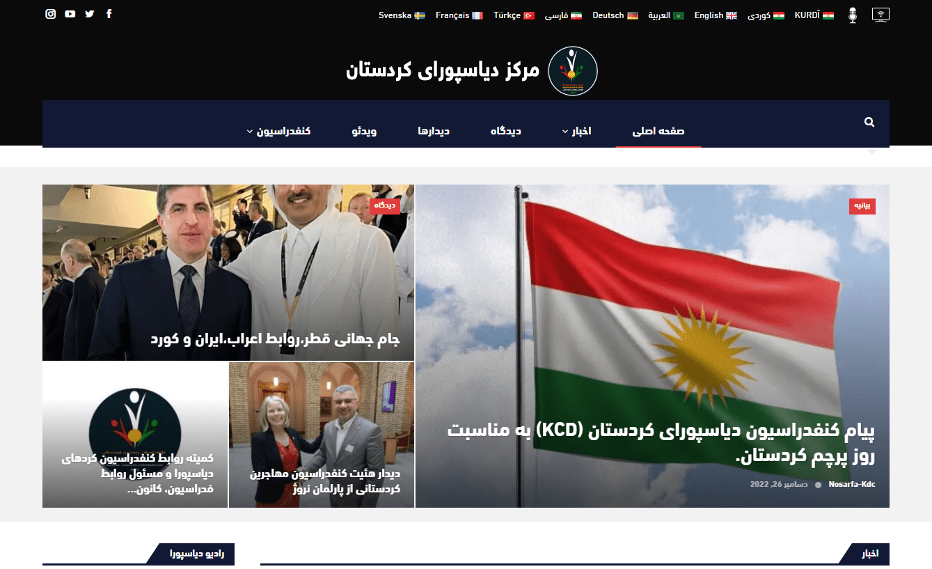 ماڵپەڕی فەرمی کۆنفدراسیۆن و ناوەندی ڕەوەندی کوردستانی https://kurdistanidc.org/ku/so/، بە فەرمی لە سەری ساڵی نوێوە بەشی زمانی فارسی دەکاتەوە.