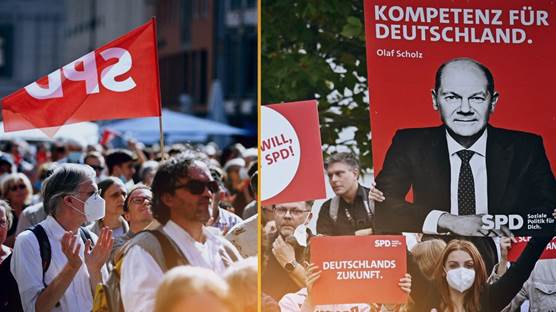 ئەنجامی هەڵبژاردنەکانی ئەڵمانیایی فیدڕاڵ ، پارتی سۆشیال دیموکرات کە پاشگرێکی چەپی هەیە بە جیاوازیەکی کەم توانی بەسەر ڕکابەرەکەی ،کە پارتی دەسەڵاتدار (پارتی یەکێتی مەسیحیەکان)بوو سەرکەوتن بەدەست بھێنێت